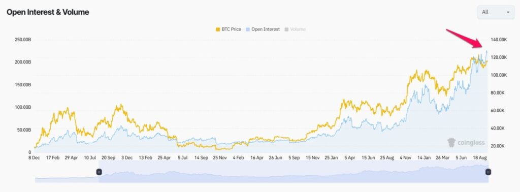Menurut data dari CoinGlass, nilai Open Interest pasar futures crypto telah menembus angka $220 miliar atau sekitar Rp3.650 triliun (dengan kurs 1 USD = Rp16.592). Angka ini menjadi rekor tertinggi bulanan dan menandakan tingginya eksposur posisi terbuka oleh para trader.