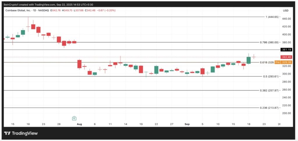 Antusiasme terhadap rencana ini berpotensi mendorong harga saham COIN naik menuju $361 jika permintaan meningkat. Sebaliknya, jika terjadi aksi jual yang lebih luas, harga saham bisa tergelincir ke bawah $329,26.