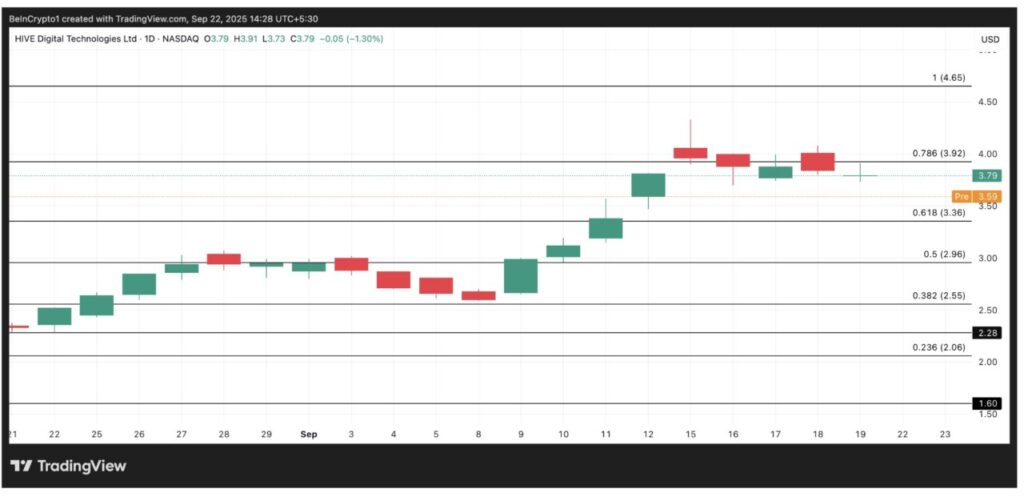 Jika aktivitas beli meningkat, saham HIVE berpotensi menguat di atas $3,92. Namun, jika tekanan jual semakin besar, harga saham bisa turun ke bawah $3,36.