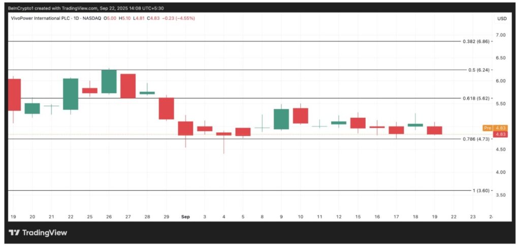 Saham VivoPower International ditutup pada harga $4,83 pada sesi perdagangan Jumat, turun 4,45% pada hari itu. Meski mengalami penurunan, VVPR berpotensi mencatatkan kenaikan minggu ini berkat perkembangan penting dalam strategi kripto perusahaan.