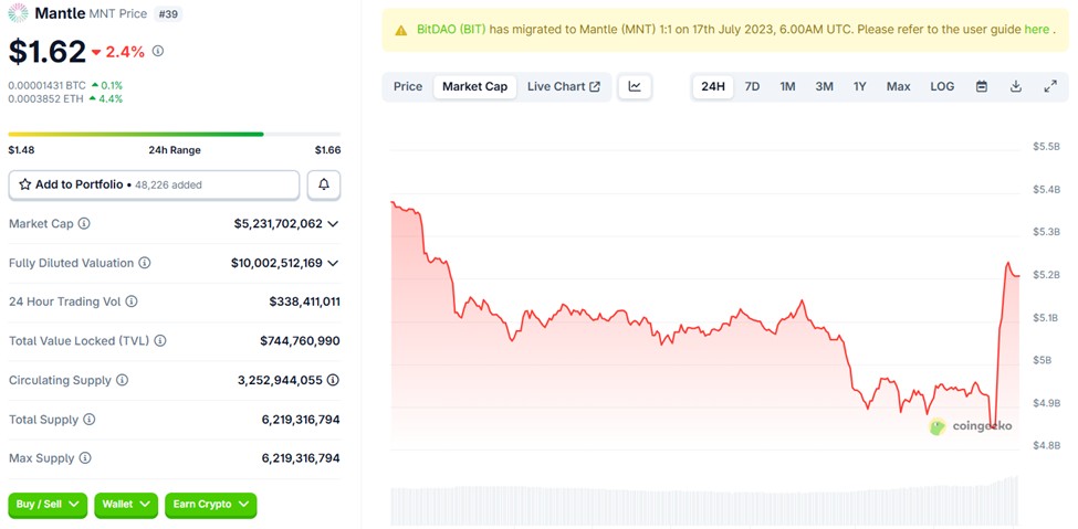 Meski kabar ini positif, harga MNT justru turun lebih dari 2% dalam 24 jam terakhir dan kini berada di $1,62 (Rp27.000), menurut data CoinGecko.