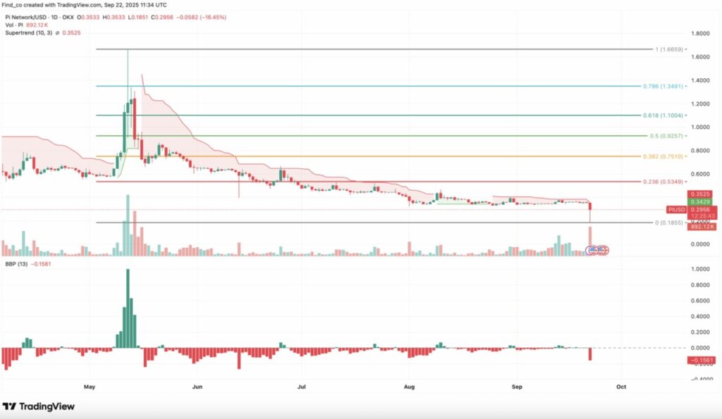 Beberapa aset crypto ā termasuk Pi Network (PI) ā mengalami penurunan lebih dalam. Yang paling mencolok, harga Pi Network anjlok ke titik terendah sepanjang sejarah di level $0,25 setelah kehilangan sekitar 20% nilainya hanya dalam 24 jam terakhir (22/9).