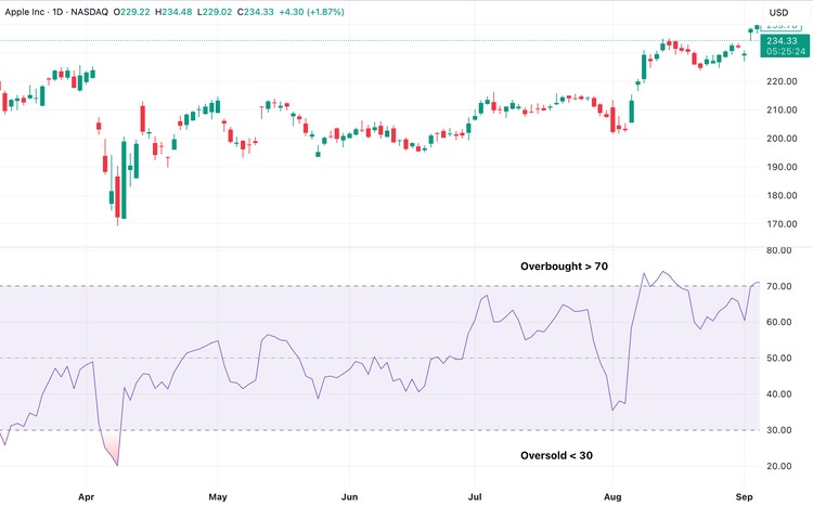 Biasanya, angka di atas 70 menandakan kondisi overbought (jenuh beli), sedangkan di bawah 30 menunjukkan oversold (jenuh jual). RSI dikembangkan oleh J. Welles Wilder Jr. dalam bukunya tahun 1978 New Concepts in Technical Trading Systems.