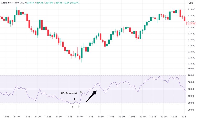 Teknik lain adalah swing rejection, yakni saat RSI keluar dari zona overbought/oversold lalu gagal kembali.