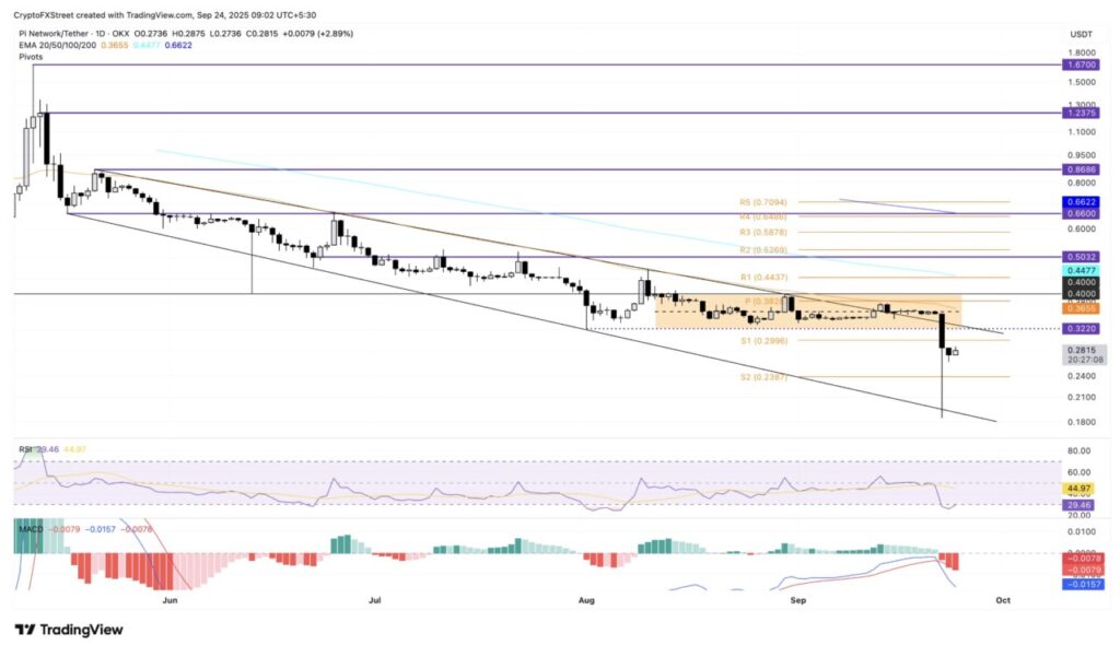 Pada 24 September sore, harga Pi Network (PI) diperdagangkan di atas $0,2800 setelah sehari sebelumnya turun 4%. Pemulihan intraday ini memberi sinyal adanya peluang pertumbuhan lebih lanjut, usai PI sempat merosot 19% pada hari Senin (22/9).