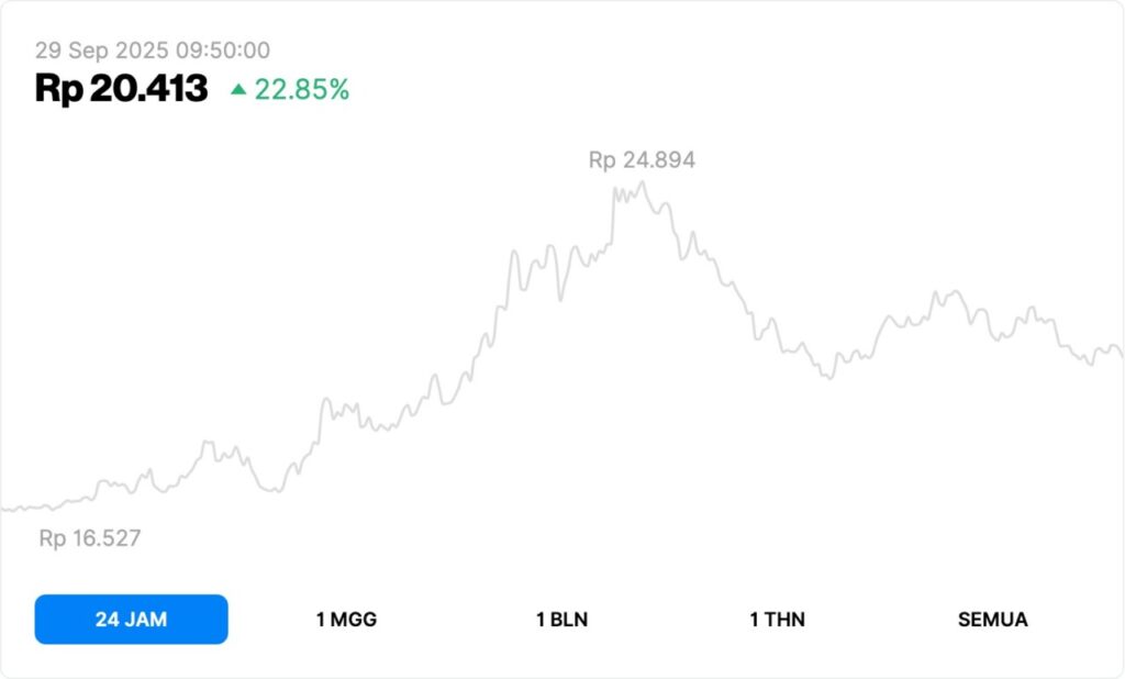 Situs Pintu juga mencatat pergerakan signifikan di harga token FORM, dari level Rp16.527 ke Rp20.413 (naik 22,85%) per 29 September 2025 pukul 09:50 WIB. Kenaikan ini menempatkan FORM sebagai salah satu token crypto dengan performa terbaik hari ini.