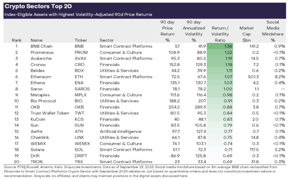Jakarta, Pintu News – Grayscale mengungkapkan dalam sebuah indeks bahwa altcoin memberikan tingkat keuntungan terbaik pada kuartal ketiga tahun 2025. Kinerja Bitcoin yang kurang optimal menjadi ciri paling menonjol pada periode tersebut, sementara BNB Chain, Prometheus, dan Avalanche menempati posisi teratas dalam daftar aset dengan performa terbaik berdasarkan penyesuaian risiko.
