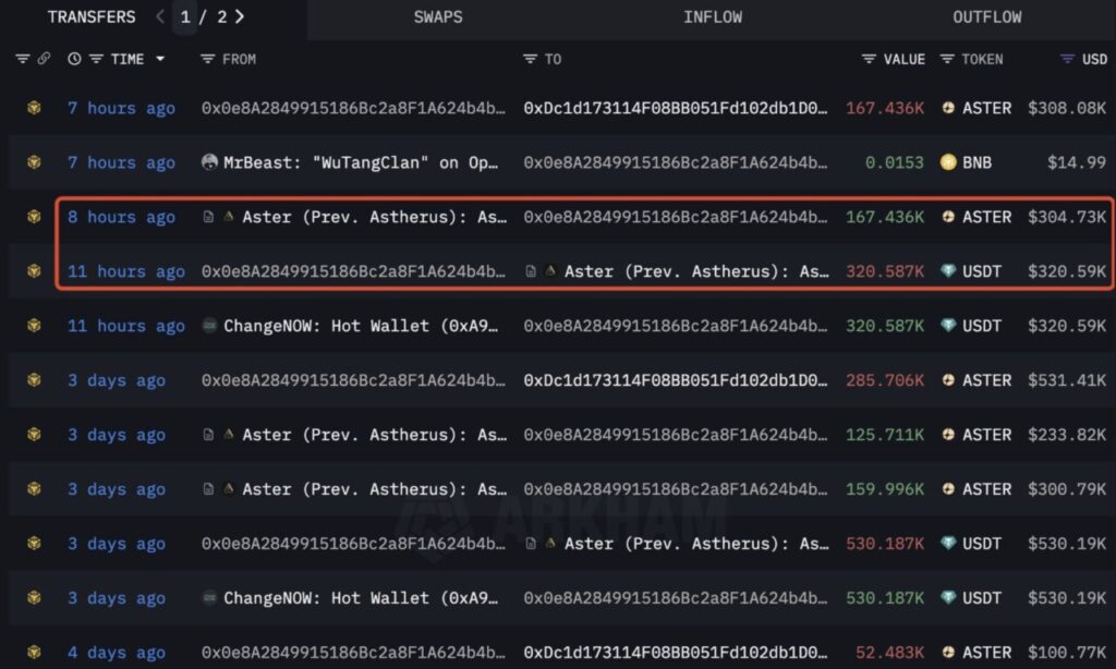 Data on-chain dari Arkham Intelligence menunjukkan bahwa YouTuber terkenal, MrBeast, baru saja menghabiskan 320.587 USDT untuk membeli 167.436 token ASTER sekitar delapan jam lalu.