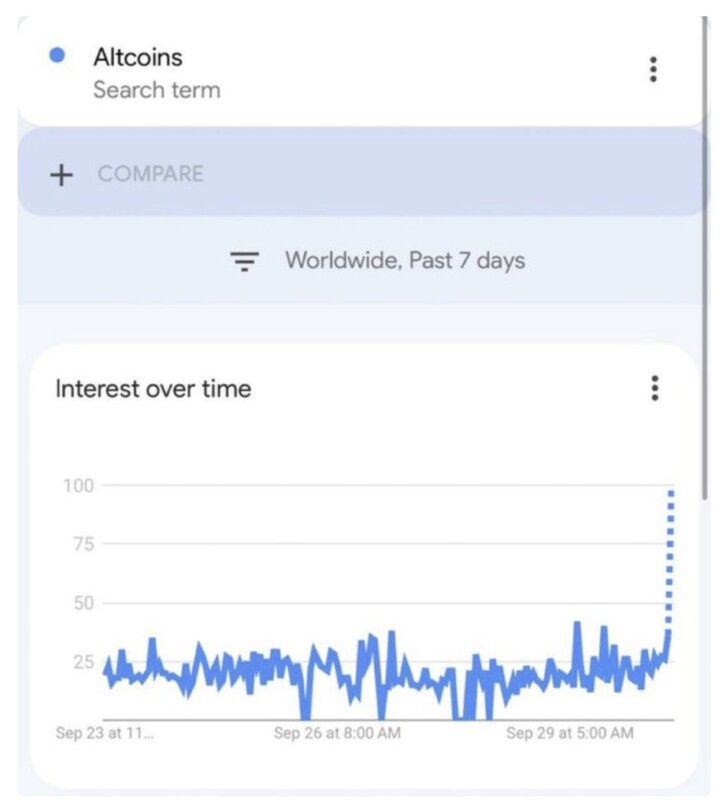 Di saat yang sama, pencarian Google terkait altcoin melonjak 40–50% pada pekan terakhir September. Selain itu, Altcoin Season Index juga menyentuh level 67, semakin memperkuat dugaan bahwa musim altcoin akan segera dimulai.