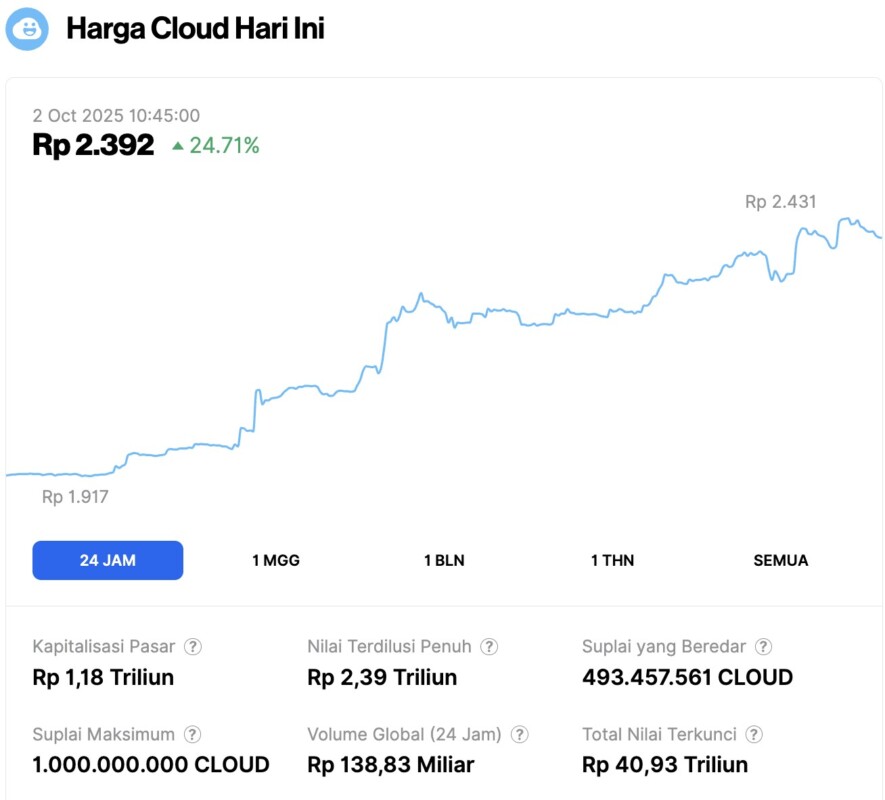 Harga CLOUD Naik 24,71% dalam Waktu 24 Jam