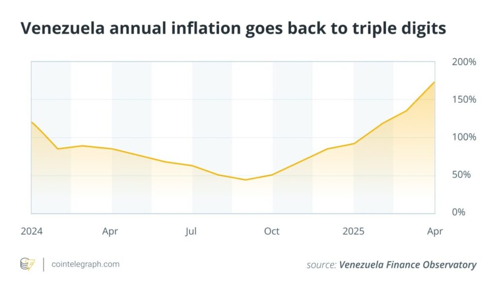 Hiperinflasi di Venezuela mencapai tingkat yang sangat parah, seringkali melampaui persentase yang sangat tinggi, dengan beberapa laporan menyebutkan inflasi tahunan melebihi 500% di masa puncaknya. Situasi ini membuat mata uang bolivar Venezuela kehilangan daya beli secara drastis dalam hitungan hari. Sebagai hasilnya, penduduk Venezuela tidak lagi memiliki kepercayaan pada sistem keuangan tradisional dan mencari solusi yang menawarkan stabilitas nilai.