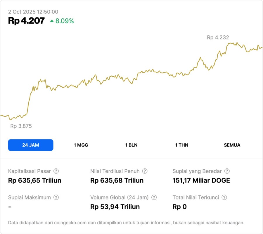 Jakarta, Pintu News ā Oktober ini tampaknya membawa angin segar bagi Dogecoin , sang raja koin meme. Kenaikan minat investor terhadap Dogecoin (DOGE) terlihat dari lonjakan open interest sebesar 2,89% dalam 24 jam terakhir, menandakan optimisme pasar terhadap prospek harga koin ini di masa depan.