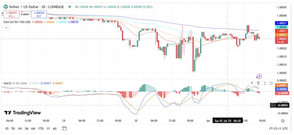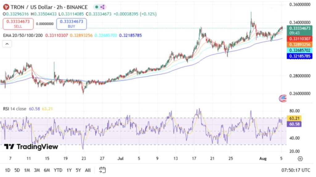 Tron masih menunjukkan kekuatan teknikal yang cukup solid, terutama dari sisi dukungan jangka pendek dan formasi EMA yang mendukung tren naik. Meskipun momentum saat ini mulai melemah, breakout di atas zona resistensi kunci bisa menjadi pemicu bagi pergerakan naik berikutnya.