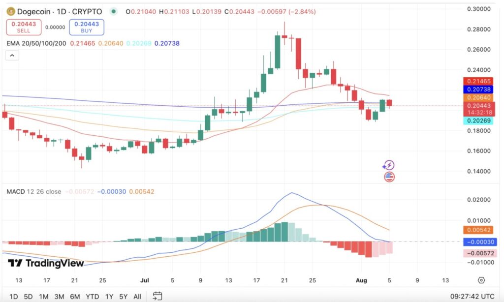Dikenal karena volatilitasnya yang dipengaruhi oleh tren media sosial dan endorsement, Dogecoin belakangan ini menunjukkan stabilitas yang tidak biasa, yang membuatnya layak untuk diawasi secara ketat — terutama jika ada perubahan sentimen pasar yang bisa memicu reli besar.
