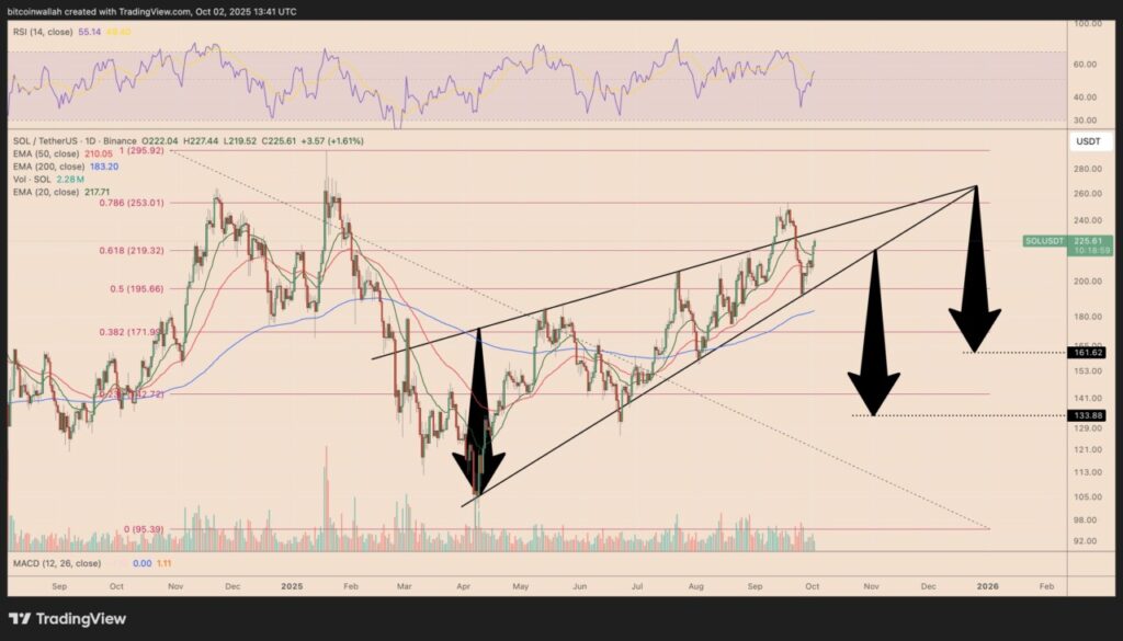Solana (SOL), yang dikenal sebagai salah satu blockchain tercepat dan paling efisien, menunjukkan potensi kenaikan yang substansial, didorong oleh peningkatan aktivitas on-chain dan proyek-proyek inovatif. Sepanjang September 2025, harga SOL telah melonjak lebih dari 11%, didukung oleh sentimen pasar positif terhadap teknologi skalabilitasnya yang unggul. Para analis teknikal sering menyoroti bahwa harga SOL sangat sensitif terhadap adopsi Decentralized Applications (DApps) dan perkembangan di sektor DeFi Solana.