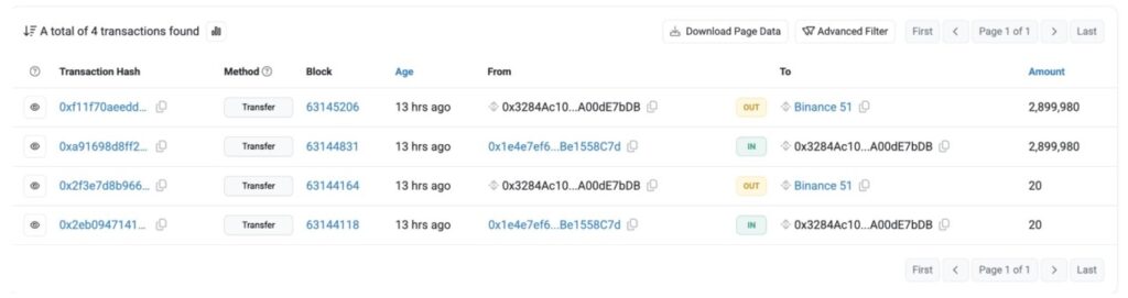 Menurut data dari BscScan, satu alamat dompet terlebih dahulu mengirim 20 ASTER sebagai transfer uji coba, yang kemudian langsung diikuti oleh transaksi jauh lebih besar senilai $4,8 juta.
