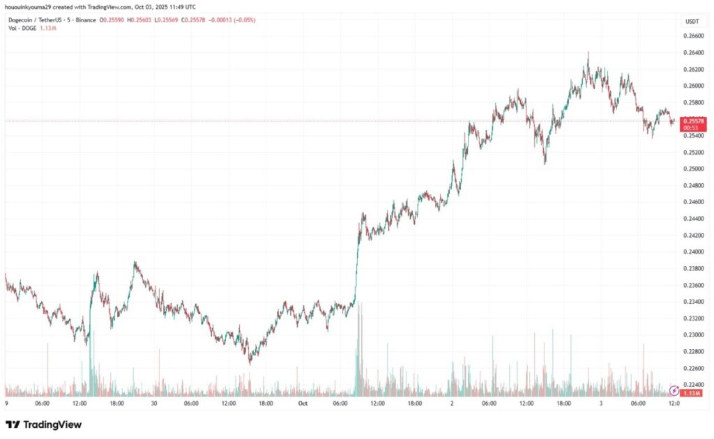 Analis tersebut menekankan bahwa “breakout akan datang” dan menyarankan para investor dan trader untuk “tetap waspada”. Saat ini, Dogecoin (DOGE) diperdagangkan sekitar $0,255, dengan kenaikan lebih dari 13% dalam seminggu terakhir. Ini menunjukkan adanya momentum positif yang bisa membawa aset ini kembali ke dalam kanal dan memicu kenaikan lebih lanjut.