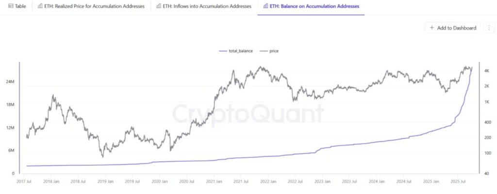 Apakah peralihan kepemilikan dari BTC ke ETH yang disebutkan sebelumnya hanyalah anomali? Ternyata tidak juga. Berdasarkan data on-chain dari CryptoQuant, dompet-dompet whale secara bertahap telah meningkatkan kepemilikan ETH mereka sepanjang kuartal ketiga (Q3) 2025.