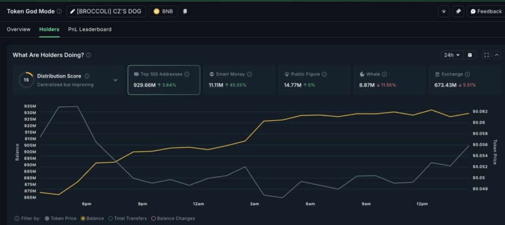 Namun, tekanan jual ini diimbangi oleh aksi beli dari dompet smart money yang justru menambah kepemilikan sebesar 45,55%, atau sekitar 3,47 juta BROCCOLI (sekitar $173.000).