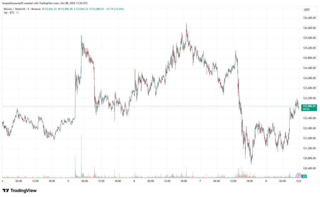 Pasar sudah mulai merasakan dampak dari pemanasan dalam Open Interest karena Bitcoin (BTC) dan altcoin mengalami volatilitas yang signifikan baru-baru ini. Bitcoin (BTC) turun tajam dari di atas $125.000 ke bawah $121.000 dalam beberapa jam, sebelum pulih kembali mendekati $123.000.