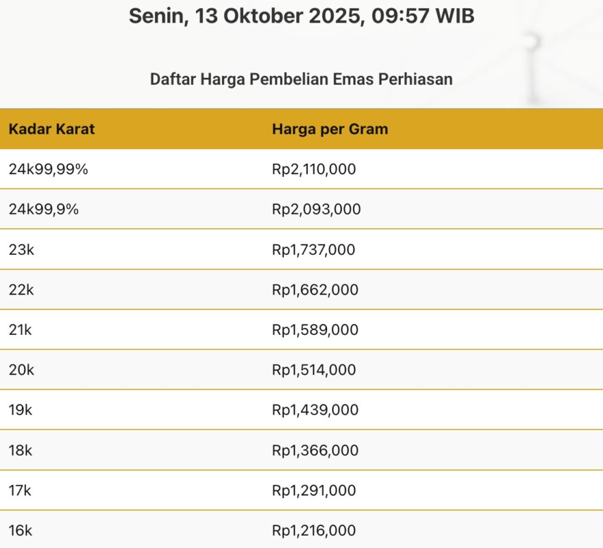 Namun, dalam praktiknya, harga jual beli perhiasan 16K bisa berbeda tergantung desain, brand, dan tempat pembelian (toko emas lokal, butik branded, dll).