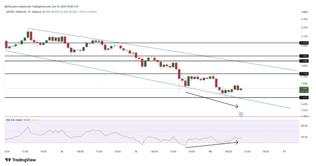 Aster — sebuah DEX baru yang berbasis di jaringan BNB — mengalami penurunan tajam setelah reli kuat sebelumnya. Setelah sempat menembus level $2, harga ASTER turun hampir 17% dalam sepekan terakhir dan kini diperdagangkan di sekitar $1,59.
