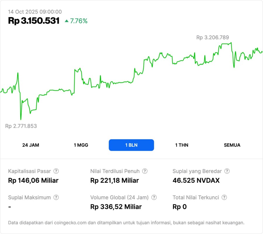 Di aplikasi Pintu, kamu bisa membeli saham NVIDIA dalam bentuk NVDAX, yaitu token saham berbasis aset digital yang mereplikasi harga saham NVIDIA secara real-time.