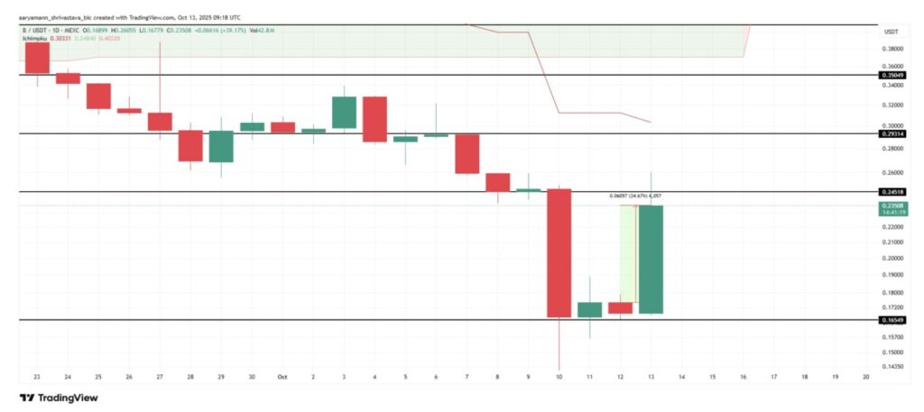 Salah satu meme coin yang sedang menjadi perhatian adalah BUILDon, yang sempat diperdagangkan di harga $0,235 — berada tepat di bawah level resistance penting di $0,245. Koin ini mencatat lonjakan sebesar 34,6% pada 13 Oktober, mencerminkan meningkatnya kepercayaan investor dan mengisyaratkan potensi kuat untuk kenaikan lanjutan dalam jangka pendek.