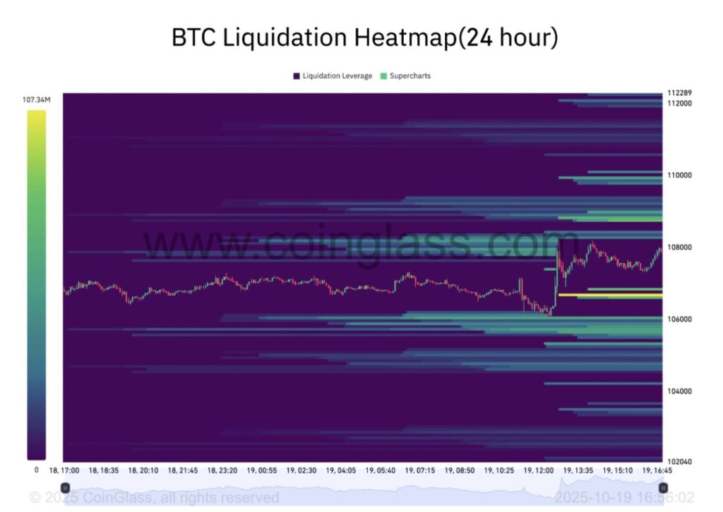 Jakarta, Pintu News – Per 19 Oktober, data dari TradingView menunjukkan bahwa pasangan BTC/USD sempat menyentuh level tertinggi lokal di angka $108.260.