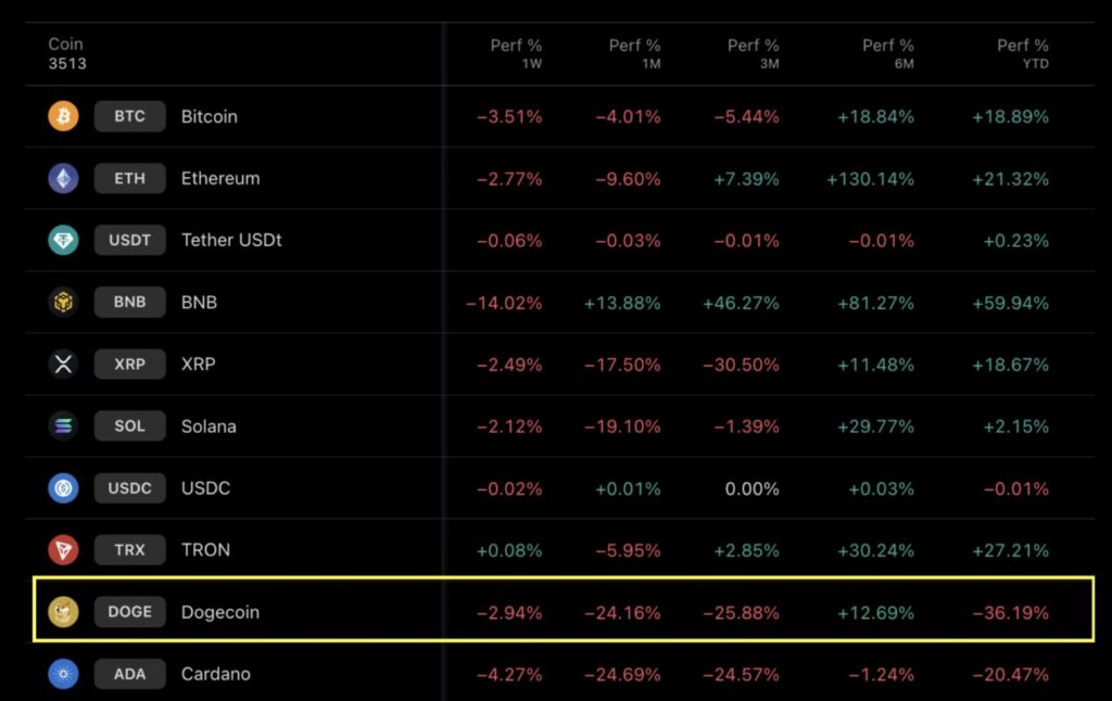 Meskipun telah pulih belakangan ini, Dogecoin masih termasuk aset kripto yang berkinerja buruk sepanjang 2025. DOGE masih turun lebih dari 35% secara year-to-date, sementara Bitcoin mencatat kenaikan 70% dan Ethereum naik 45%.