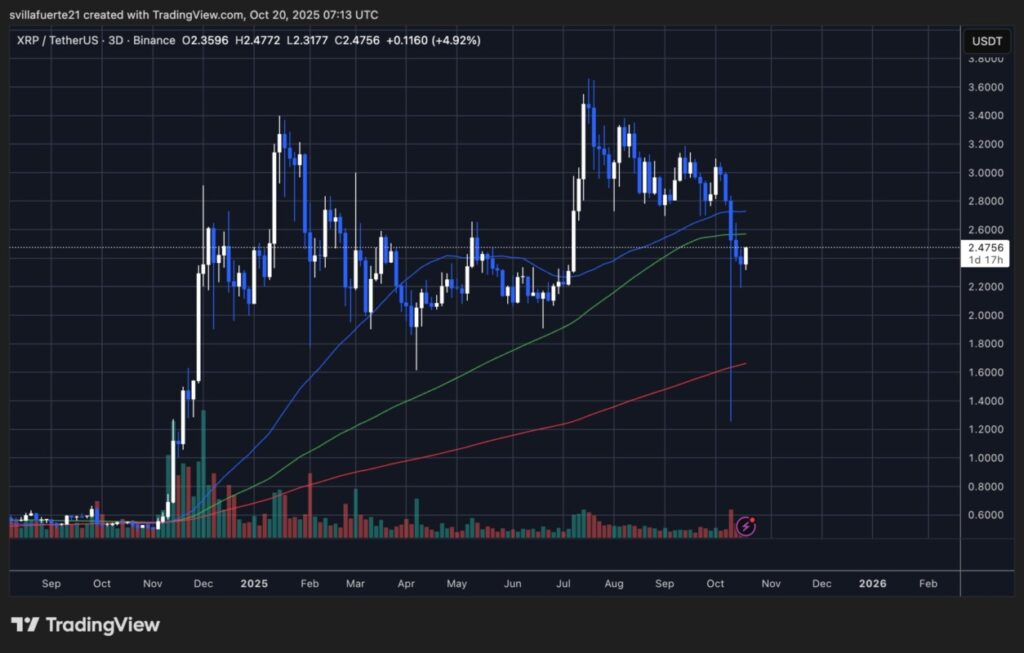 Ripple (XRP) menunjukkan tanda-tanda stabilisasi awal setelah salah satu koreksi terbesar tahun ini. Grafik menunjukkan bahwa token tersebut memantul dari titik terendah dekat $2,3, tingkat yang sejalan erat dengan rata-rata pergerakan 100 hari yang kini bertindak sebagai dukungan jangka pendek.