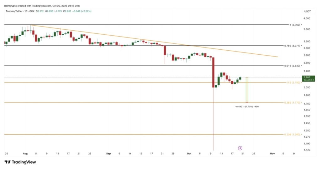 Namun, meskipun unlock besar tersebut sudah di depan mata, harga Toncoin justru naik hampir 6% pada 20 Oktober. Hal ini menunjukkan ketahanan yang cukup kuat, bahkan melampaui performa pasar secara keseluruhan.