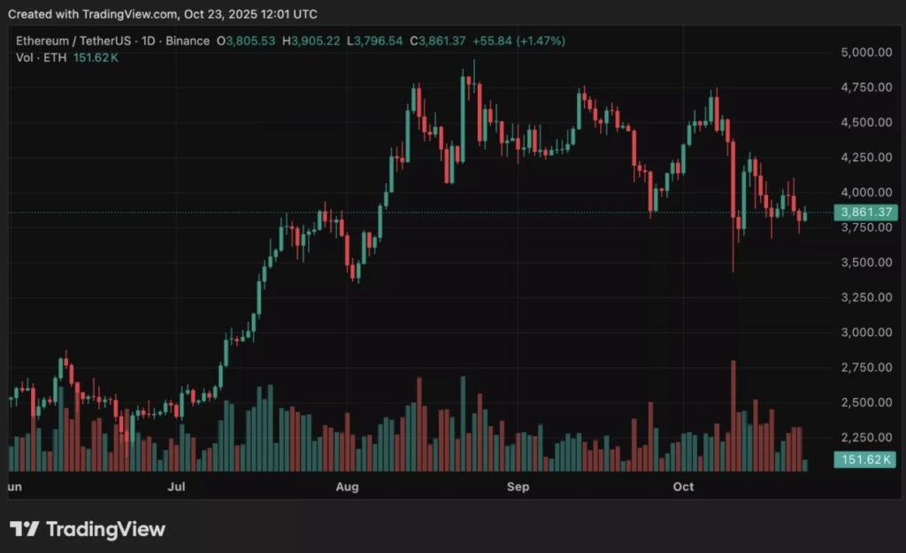 Baca juga: Harga Ethereum Bertahan di $3.800 Hari Ini (24/10/25): Analis Crypto Ramal ETH akan Melejit