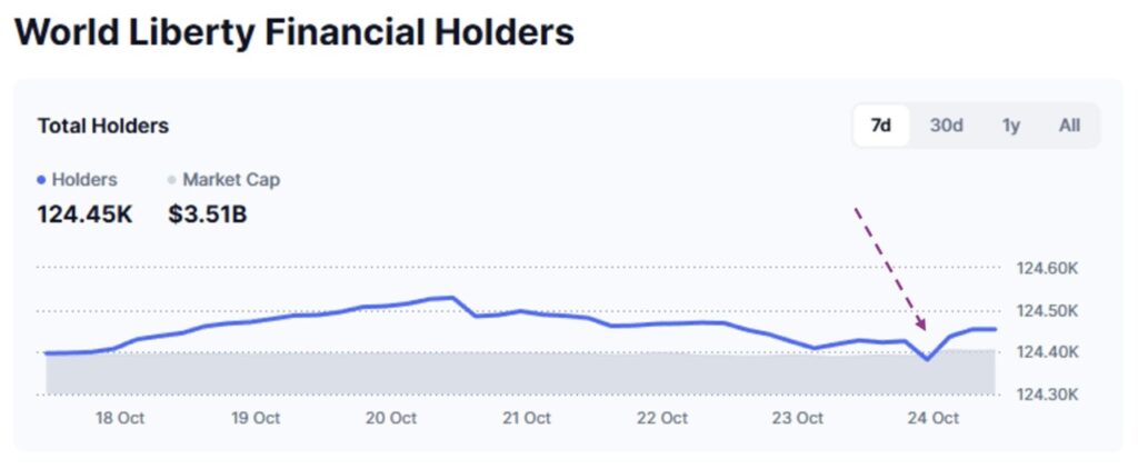Berdasarkan grafik, jumlah pemegang WLFI turun dari 124.520 menjadi 124.380 dalam seminggu terakhir. Namun, setelah kabar pengampunan, angka ini naik kembali menjadi 124.450. Kenaikan kecil ini menjadi tanda awal kembalinya kepercayaan investor, setelah sebelumnya WLFI sempat anjlok hampir 30% sejak bulan lalu.
