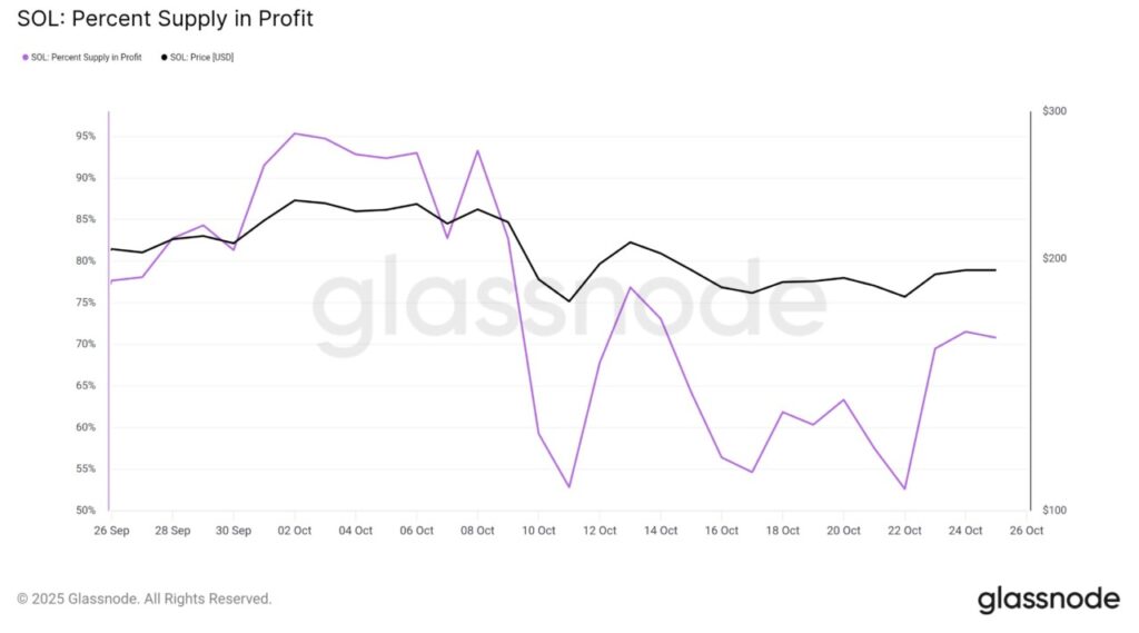 Dalam waktu hanya 48 jam, persentase pasokan SOL yang mencatat keuntungan melonjak dari 52% menjadi 70% ā kenaikan sebesar 18% ā sementara harga SOL sendiri hanya naik kurang dari 5%. Ketimpangan ini mengindikasikan bahwa banyak pemegang SOL membeli token mereka di sekitar level $200.