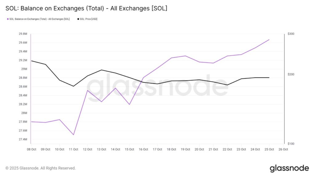 Kenaikan saldo SOL di bursa sering kali menjadi pertanda koreksi jangka pendek, karena peningkatan pasokan di platform perdagangan memperbesar risiko aksi jual. Kecuali aliran masuk melambat atau muncul minat beli yang kuat, Solana kemungkinan besar masih akan menghadapi tekanan penurunan harga.