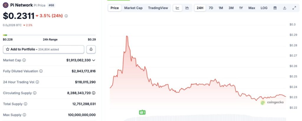 Dari sisi fundamental, kapitalisasi pasar Pi Network tercatat sebesar $1,91 miliar, sementara valuasi terdilusi penuh mencapai hampir $2,94 miliar. Aktivitas pasar juga tergolong tinggi, dengan volume perdagangan 24 jam yang menembus $118 juta.