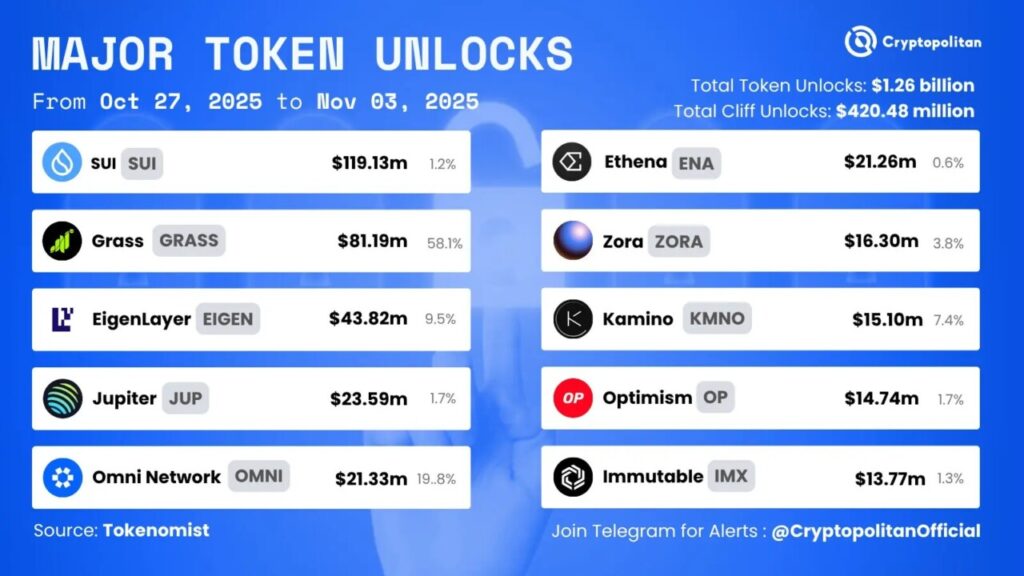 Jakarta, Pintu News – Pasar cryptocurrency kembali mendapatkan perhatian investor besar setelah laporan dari Tokenomist menyebutkan akan terjadi token unlock senilai lebih dari USD 653 juta atau sekitar Rp10,8 triliun dalam periode 27 Oktober–3 November 2025.