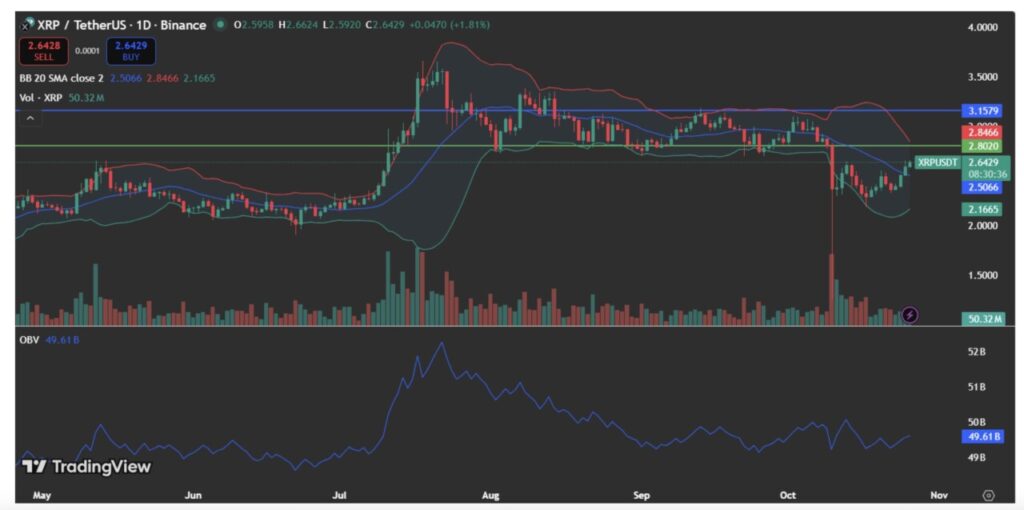 Per 27 Oktober, XRP sempat diperdagangkan di harga $2,61, mengalami kenaikan sebesar 0,33% dalam 24 jam.