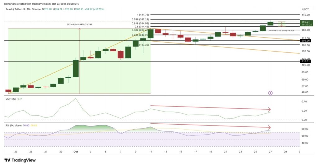 Kondisi ini membuka peluang terjadinya koreksi ringan sekitar 10%–12%. Dengan kata lain, harga ZEC mungkin akan menguji kembali level $314 atau bahkan $284 sebelum melanjutkan tren naiknya.