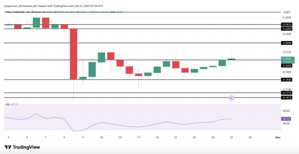 Upgrade ini bisa mendorong harga POL naik dari $0,203 ke level resistance $0,220. Namun, hal ini bergantung pada apakah level $0,203 dapat bertahan sebagai support yang kuat.