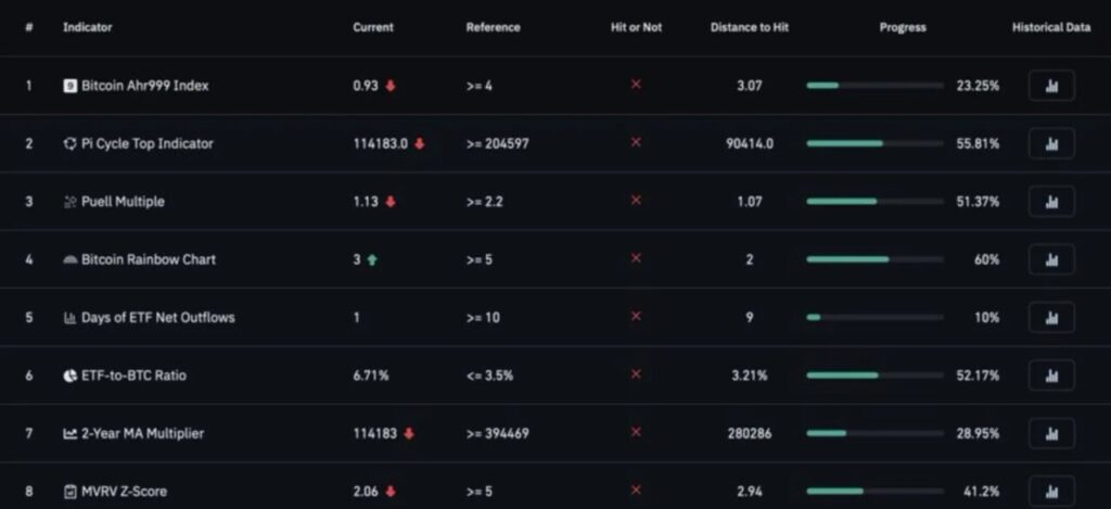 Meskipun ada ketidakpastian pasar saat ini, VirtualBacon menegaskan bahwa Bitcoin (BTC) belum mencapai puncaknya. Dari 30 indikator historis yang biasanya menandakan puncak pasar bull, belum ada yang aktif, dengan data menunjukkan masih ada ruang untuk pertumbuhan.