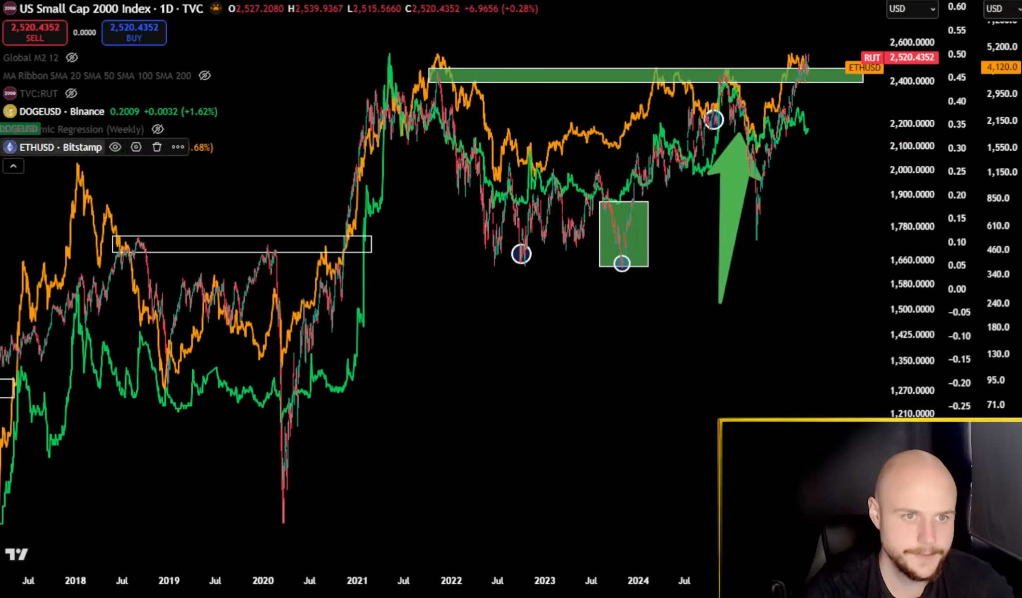 Analis juga membuka ruang diskusi terkait potensi terjadinya altseason menjelang akhir tahun. Menurutnya, jika Ethereum mampu menarik minat investor dari pasar ekuitas kecil (Russell 2000), maka rotasi modal ke altcoin akan meningkat, dan Dogecoin bisa menjadi salah satu gainers.