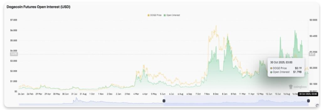 Arah pergerakan Dogecoin selanjutnya sangat bergantung pada kemampuan pembeli untuk mempertahankan support di $0,18 di tengah arus keluar yang masih berlangsung. Kekuatan di pasar derivatif, dengan open interest yang telah menembus $1,79 miliar, menunjukkan adanya peningkatan minat spekulatif.