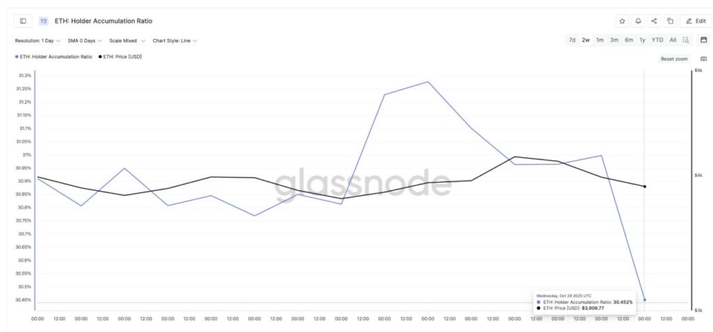Jika Holder Accumulation Ratio stabil pada bulan November, ini bisa menjadi sinyal bahwa keyakinan investor ritel mulai menyusul optimisme para whale — dan ini bisa memperkuat dampak dari rekalibrasi yang lebih luas ini.