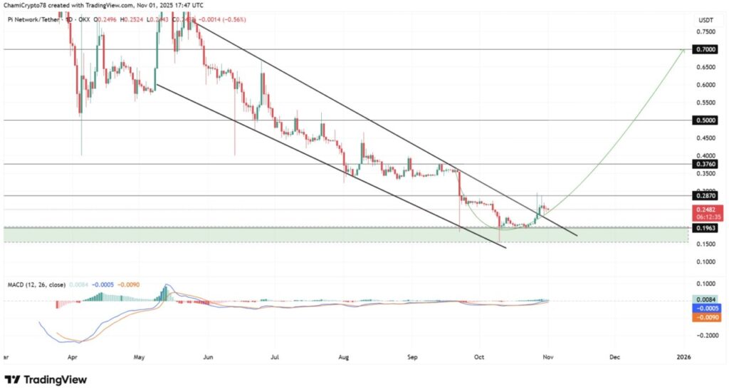 Target utama saat ini berada di sekitar $0,70—wilayah di mana target keuntungan jangka pendek dan optimisme jangka panjang bertemu. Dengan crossover bullish pada indikator MACD yang semakin menguat, proyeksi harga jangka panjang Pi Coin tetap positif di tengah kondisi pasar yang terus berkembang.
