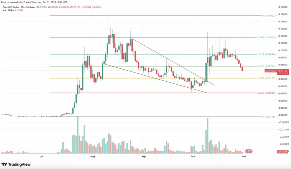 Meski begitu, dengan harga saat ini di $0,071, ZORA masih turun sekitar 51,34% dari titik tertingginya. Di sisi lain, sentimen pasar terhadap altcoin yang dibangun di jaringan Base terus menunjukkan tren positif.