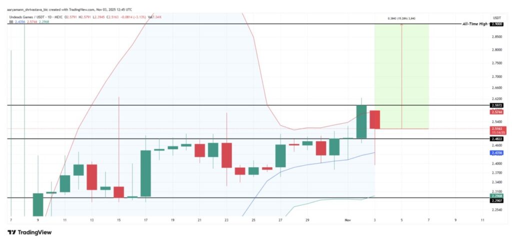 Harga UDS terus menunjukkan tren naik yang stabil dalam beberapa minggu terakhir, mencerminkan meningkatnya kepercayaan investor. Per 3 November, altcoin tersebut diperdagangkan di level $2,51 dan menghadapi resistance langsung di $2,59.