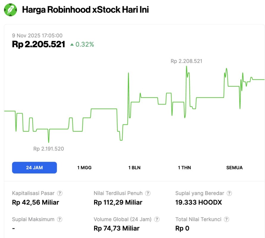 Meskipun tidak memberikan kepemilikan langsung atas saham fisik, token ini mencerminkan nilai dan pergerakan harga saham aslinya secara real-time. Melalui saham tertokenisasi, investor dapat membeli fraksi dari saham perusahaan besar yang mungkin sulit dijangkau secara konvensional, baik karena harga tinggi maupun keterbatasan akses pasar. Mekanisme ini juga memungkinkan perdagangan berlangsung selama 24 jam, melampaui jam operasional bursa tradisional.