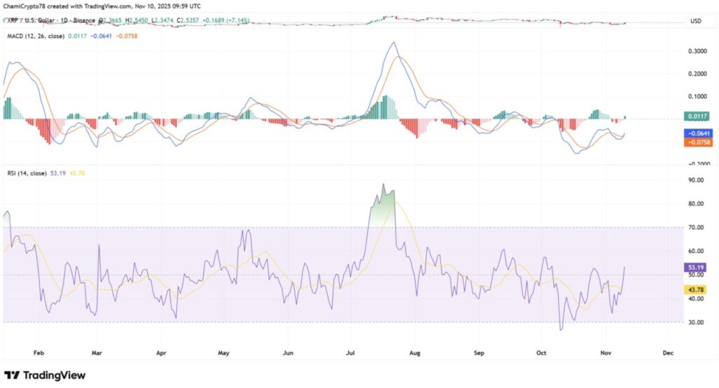 Dengan demikian, struktur harga XRP mencerminkan fondasi yang kuat, dan momentum pasar saat ini secara tegas berpihak pada pembeli menjelang pertengahan November.